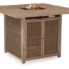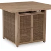 - Includes gas fire pit table with CSA-approved 55,000 BTU stainless steel burner, glass beads, burner cover and all-weather protective cover