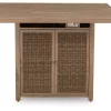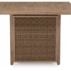 A perfect balance of design and utility, this bar table with fire pit turns any outdoor living space into your own piece of paradise. Crafted with easy-care resin wicker over an aluminum frame with the look of wood, it’s the epitome of California dreamin’ style. The press of a button ignites a flickering flame that dances over a bed of glass beads. And with room for up to eight, it’s one highly accommodating table.