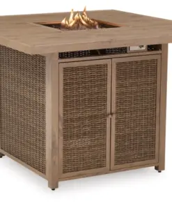 - Includes gas fire pit table with CSA-approved 55,000 BTU stainless steel burner, glass beads, burner cover and all-weather protective cover