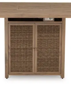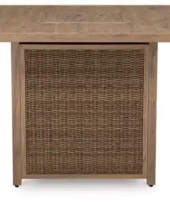 A perfect balance of design and utility, this bar table with fire pit turns any outdoor living space into your own piece of paradise. Crafted with easy-care resin wicker over an aluminum frame with the look of wood, it’s the epitome of California dreamin’ style. The press of a button ignites a flickering flame that dances over a bed of glass beads. And with room for up to eight, it’s one highly accommodating table.