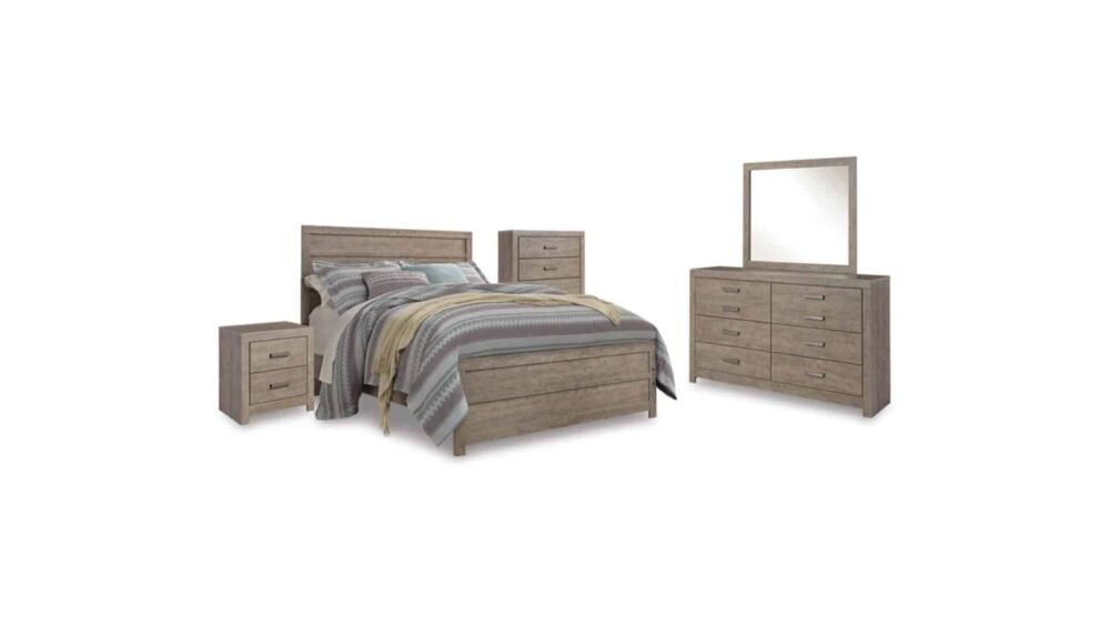 Culverbach Queen Panel Bed with Mirrored Dresser, Chest and Nightstand