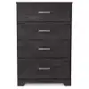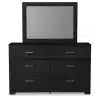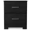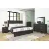 With its clean-lined look and modern attitude, this bedroom package is a fresh style awakening. A warm charcoal hue over replicated oak grain easily complements other furniture finishes. Smooth drawer fronts with antiqued pewter-tone handles complete the aesthetic.