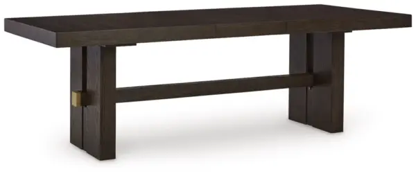 Dressed to thrill, this simply stunning dining package offers a high-design look at a down-to-earth price. Ultra sleek lines are accentuated with a dark waxy brown oak-tone finish that’s so easy on the eyes. A clean-lined, modern dining table showcases quality craftsmanship with its double pedestal base and thick edge tabletop. The armless dining chairs, upholstered in a tweed-like neutral fabric, are designed with a softly contoured back design that’s tailor-made for comfort. Whether you’re hosting family meals or holiday entertaining, this set has a timeless look that’s made to last.