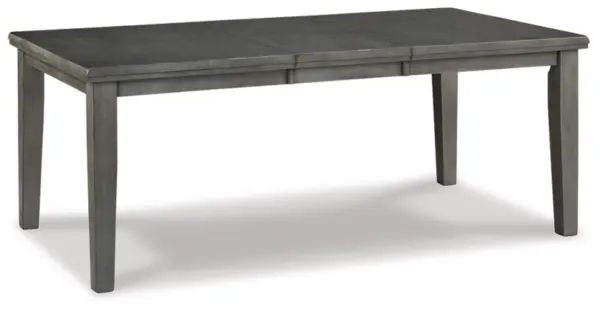 Cool and on-trend. This dining package sports a two-tone gray look for a contemporary-yet-casual feel. The rectangular table features a thick sturdy top with a self-storing butterfly leaf, making it a breeze to expand your table space. Comfortably cushioned, the side chair features a padded seat, while its contoured comb-back design adds a dash of geometric flair. Gray textural fabric pairs seamlessly with the antiqued gray finish of the table.