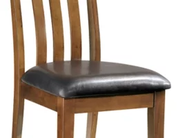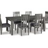 Have an appetite for clean-lined design, but with warmth and rustic character? Satisfaction is served with this dining room set. We love how its gently distressed, burnished finish and plank-style accents incorporate depth and character. And its straightforward lines? A wonderful display of good taste. The plushly upholstered faux leather seating makes sitting down to dinner that much more enticing. Makes for easy cleanup, too.