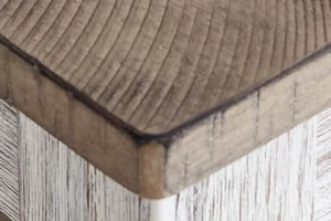 - Two-tone finish (brown tone top and distressed grayish white base)