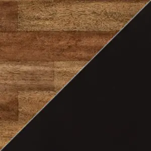 - 2-tone finish (butcher block mango veneer top with deep brown wood tone finish; frame with warm satin black finish)