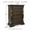 - Top drawer interior (lined): 18.75″ W x 11.13″ D x 3.63″ H