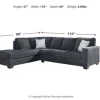 - Includes 2 pieces: left-arm facing corner chaise and right-arm facing sofa