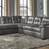 How can you not fall for this 2-piece sectional? It’s dressed to impress in a multi-tonal slate gray faux leather beautified with jumbo stitching. Box cushions and tailored tufting make for a decidedly modern aesthetic. Rest assured, it’s also got an ultra-thick pillow top armrest to cradle you in comfort.