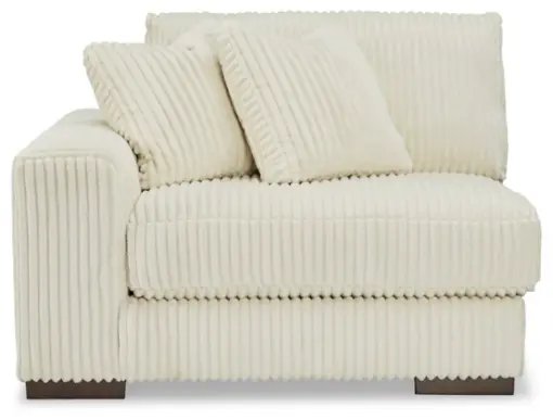 Plush and posh. Showcase your eye for on-trend texture with the statement-making cord upholstery of this sectional. Its stunningly soft fabric entices in an ivory hue, complementing contemporary color palettes. Sink into the cushions and plan to stay a while—this cozy living room centerpiece highlights your high-end approach to comfort and style.