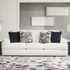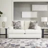 Craving casual refinement? This sofa has you covered. Its decidedly contemporary frame cradles sizable cushions in an ultra-soft neutral hue, lightening the mood in your living room with simple style and everyday comfort. Solid and geometric accent pillows perfect the chic-meets-cozy vibe.