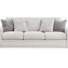 Craving casual refinement? This sofa has you covered. Its decidedly contemporary frame cradles sizable cushions in an ultra-soft neutral hue, lightening the mood in your living room with simple style and everyday comfort. Solid and geometric accent pillows perfect the chic-meets-cozy vibe.