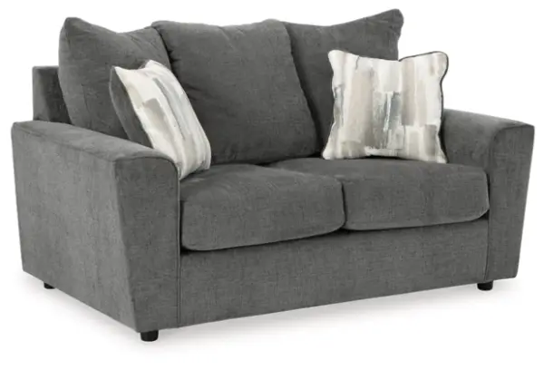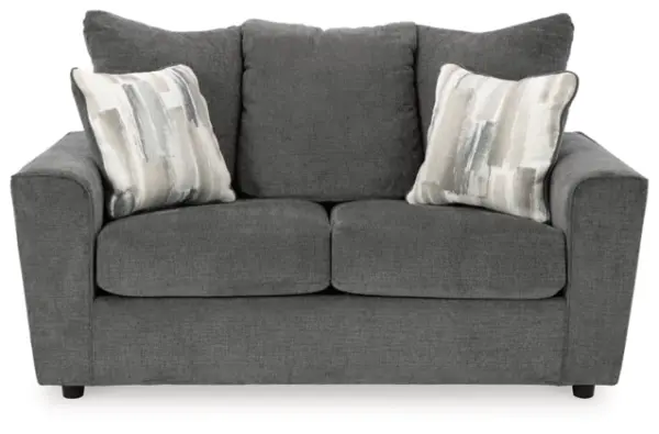 What’s new in neutrals? Shades of gray, of course. Embrace the sophisticated design trend with this gorgeous sofa, which offers a clean-lined, contemporary style at a comfortably cool price. Sure to lift your spirits, the plush chenille fabric is fabulously neutral. Modern flared arms give it a distinctive flair. This sofa also arrives with two cool brushstroke accent pillows to elevate the taste and comfort level.