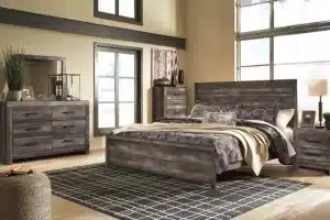 Rustic yet refined. Cool and clean, yet warm and inviting. This bedroom set has so many great qualities, making it an inspired choice for your dream destination. A prime example of “casual contemporary” style at its very best, this bedroom set is dressed to impress with minimalist flair. Softly brushed gunmetal finish hardware is wonderfully easy on the eyes.