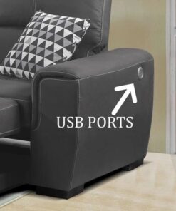 Providing the flexible option for relaxation, sleep and storage, 6156 Sleeper sofa will be a stylish and functional addition to your living room. Storage ottoman is also included with the set along with 2 throw pillows. The lower portion of the seating configuration pulls out to reveal a pop up trundle that creates a bed space creating a relaxing environment with minimal effort. Grey color technical thick and durable fabric is used to upholster this unique set and is also equipped with USB charging ports on the side of the arm for easy access to a charging port.