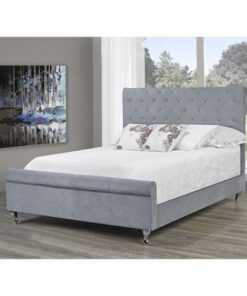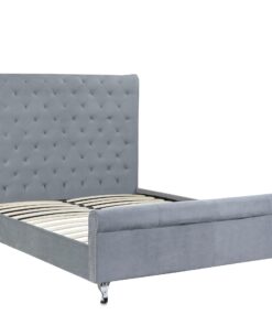 You’ll be looking for any excuse to go to bed when you introduce this stunning bed to your slumber space. Very modern yet upholding traditional appeal, this bed frame is wrapped in tightly woven, chenille fabric, and sits atop solid, curved chrome plated metal feet. The bed frame commands attention with its diamond-grid tufting and studded detail. A hint of luxury balances beautifully with this incredibly attractive bed.