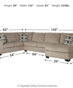 | Additional Information | • Arm Height: 25″ • Leg Height: 3.5″ • Sectional Components: Laf Sofa, Armless Loveseat And Raf Corner Chaise |