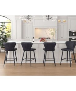 Classic styling and modern finishes come together beautifully with this counter height stool. The textured faux leather seat is contoured with a high back for optimal comfort. Sleek black metal base can be integrated into any design space. Great for casual kitchen counter seating or formal entertaining spaces.