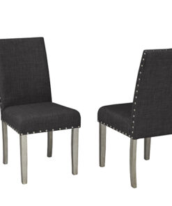 Add some visual interest and comfortable seating to your home with this stylish dining chair. The sturdy rubber wood construction and webbing seat structure of this chair stands up to regular use with ease and the grey, 100% polyester fabric is as practical as it is eye-catching. Accented with a classic nail-head trim for durability and style, this chic chair makes an elegant complement to any dining room, living room or study. The rich grey shade of fabric is neutral enough to blend seamlessly with most colour schemes, while still providing an updated take on the usual brown and black options.