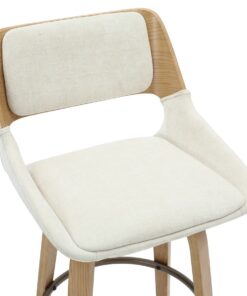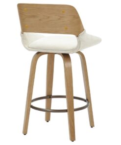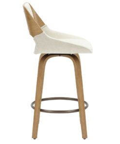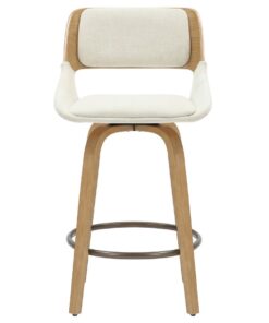 When the best of mid-century modern design is integrated perfectly into the current design world, you get gorgeous pieces like this stool. The bentwood frame and legs are beautifully finished in a natural wood finish, and the cushioning is all upholstered in a soft textured fabric – creating the perfect modern mid-century piece. The footrest is finished in dull aged gold and provides additional comfort. Full swivel allows for ease of use at any counter space.