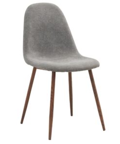 Blending natural and man-made materials cohesively with a mid-century modern twist, this trendy side chair showcases a sleek and coherent design. Composed of a comfortable, curved wood seat frame with foam covered in fabric upholstery this chair balances simplicity with style. Made with metal legs in a walnut finish through the process of heat transferring, this chair will boast sturdiness along with the sleek look and comfort. Not one to blend into the background, its appearance can showcase any surrounding décor or table in a positive light and will ensure your space becomes a gallery of inspiration and beauty. And easy match to any table style and finish, for formal or casual spaces.