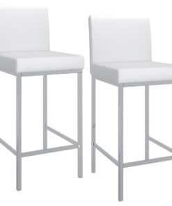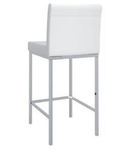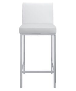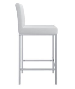 Contemporary counter height stool with faux leather and shiny chrome finishing. Combined, these two materials create a modern piece that will work will with any decor. The low back provides ample back support while adding to the minimalist appeal. Great for a casual breakfast bar or for the fancy basement bar where you can spend hours conversing with guests.