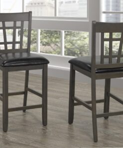 Combining understated elegance and comfort, this set of two counter-height stools bring stylish seating to your kitchen or home bar. Made for both fashion and function, the stools feature a sophisticated distressed grey color scheme and rounded edges combined with splayed legs for a look that effortlessly fits with a range of home decors. Slatted chair backs add visual interest, while sturdy frames and premium textured polyester fabric covers provide long-lasting durability. Designed to impress, these attractive Counter Stools make an eye-catching addition to any living space.
