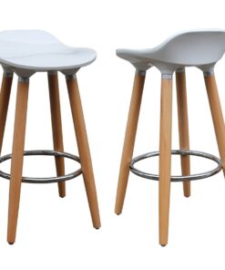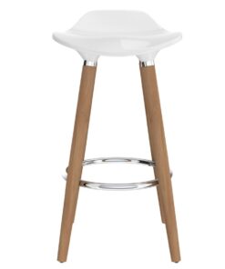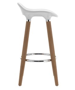 Let the curves of the seat and back on this stool provide you with hours of comfort, whether you are enjoying a drink with friend in your basement bar, or enjoying a lazy Sunday brunch at your kitchen counter. The white ABS plastic seat is a fresh addition to any decor. The natural finish on the beech wood legs and the chrome finish on the footrest combine to create a casual, modern feel.