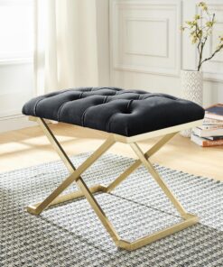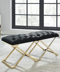 An accent seat as dazzling as the room it accentuates, this single bench pulls out all the stops to heighten its surroundings. Covered in high-end fabrics that give it a sumptuously soft and luxurious feel, the true beauty of this furnishing is exemplified through its abundance of intricate detailing and glamorous finishes. This bench makes for an excellent complement to a makeup vanity, dressing room, bedroom, living room, or sitting room as its small size allows it to fit into any sized space. With its practicality being unparalleled, the only thing more breathtaking about this piece is its stunning design.