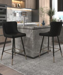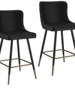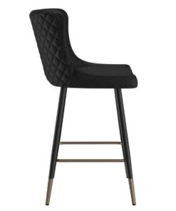 Find perfect, over-sized seating on this mid-century inspired counter stool. The contoured shape and plush, diamond-patterned tufting on the back provide comfort on one side and a dose of style on the other. Black metal legs with the gold dipped detail will provide sturdy support. Great for a casual kitchen setup or a formal basement bar.