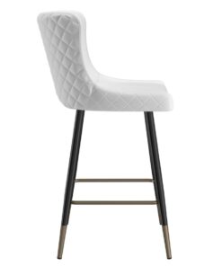 Find perfect, over-sized seating on this mid-century inspired counter stool. The contoured shape and plush, diamond-patterned tufting on the back provide comfort on one side and a dose of style on the other. Black metal legs with the gold dipped detail will provide sturdy support. Great for a casual kitchen setup or a formal basement bar.