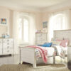 This queen-size panel bed, dresser, mirror, chest of drawers and nightstand is a refined take on barn board beauty. Its complex, replicated wood grain showcases hints of burnt orange and teal tones for a sense of weatherworn authenticity. Love to read in bed? You’re sure to find the pair of retro-chic light sconces and USB plug-ins on the open-slat style headboard such a bright idea. The dresser, chest and nightstand with smooth-gliding drawers lined with faux linen laminate and industrial dark-tone hardware complete this rustic and industrial style bedroom. Mattress and foundation/box spring available, sold separately.